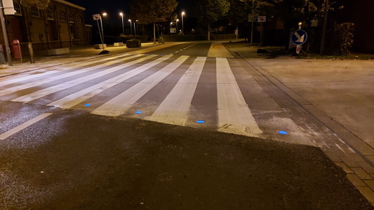 Izegem : wegdekverlichting als looplijn Gebruik van de ILDE-R10 blauw met SUS case Lees meer: Izegem : wegdekverlichting als looplijn